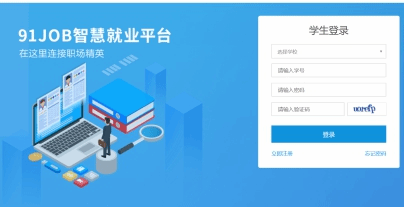 1.登陆http://www.91job.org.cn/user/student。选择学校,输入学号、密码、验证码登录系统。密码若遗忘,请咨询辅导员。