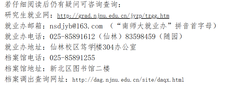 2.违约办理:网签的学生可在系统申请,就业办审核;纸签的学生请准备好原就业协议书及解约证明交至就业办(如不便亲自前往可邮寄至仙林校区笃学楼304室,最好使用EMS邮寄,邮寄后可换新的纸质协议书或开通网签)。